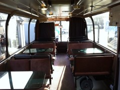 36 Sitzplätze in 4er Gruppen an Glastischen mit Ledersitzen.
